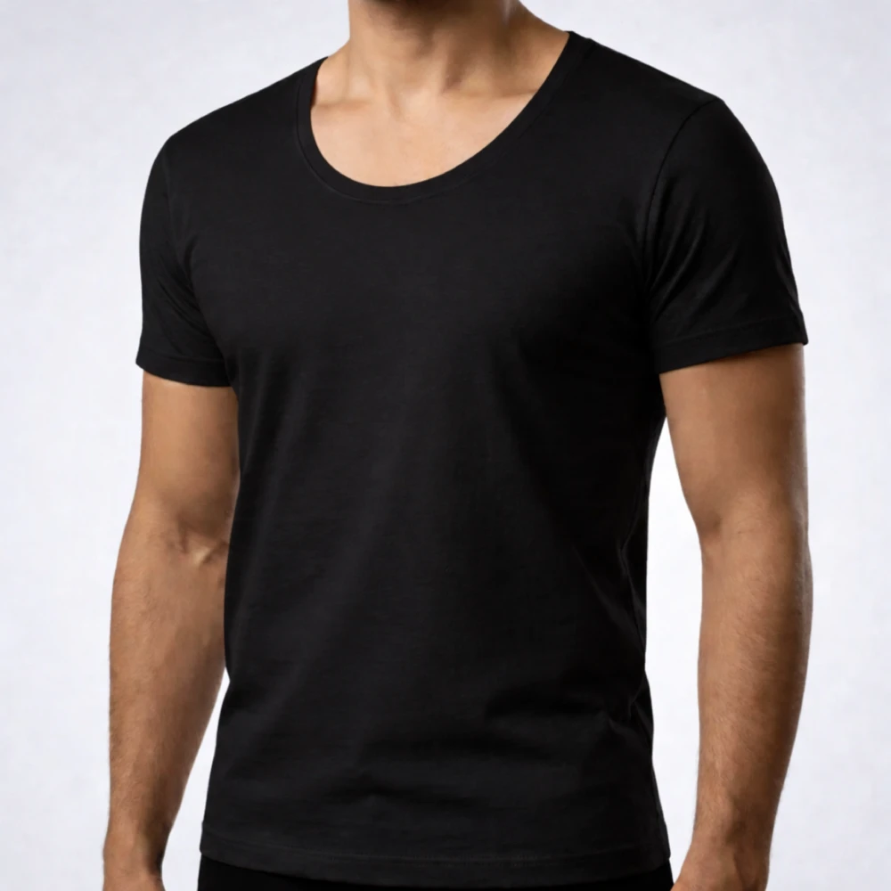 زیرپوش مردانه نیم آستین یقه گرد پنبه مشکی